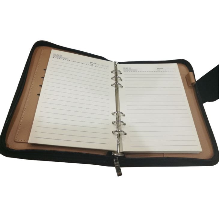 Материалът за покриване е направен от кафява кожа PU и лека PVC кожа, 100 гр. Бяла офсетна хартия за вътрешни страници. Тази пластмаса от PU Leather Notebook се развива от естествена кожа и се смесва с технология, която се ражда по-стабилна физическа собственост. Силната способност против изстъргване може да ви придружава с по-дълго време.